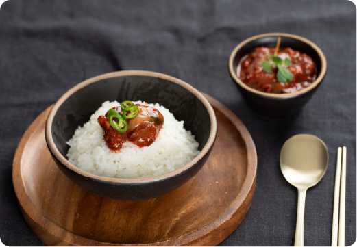 A hearty meal with warm rice on the side
